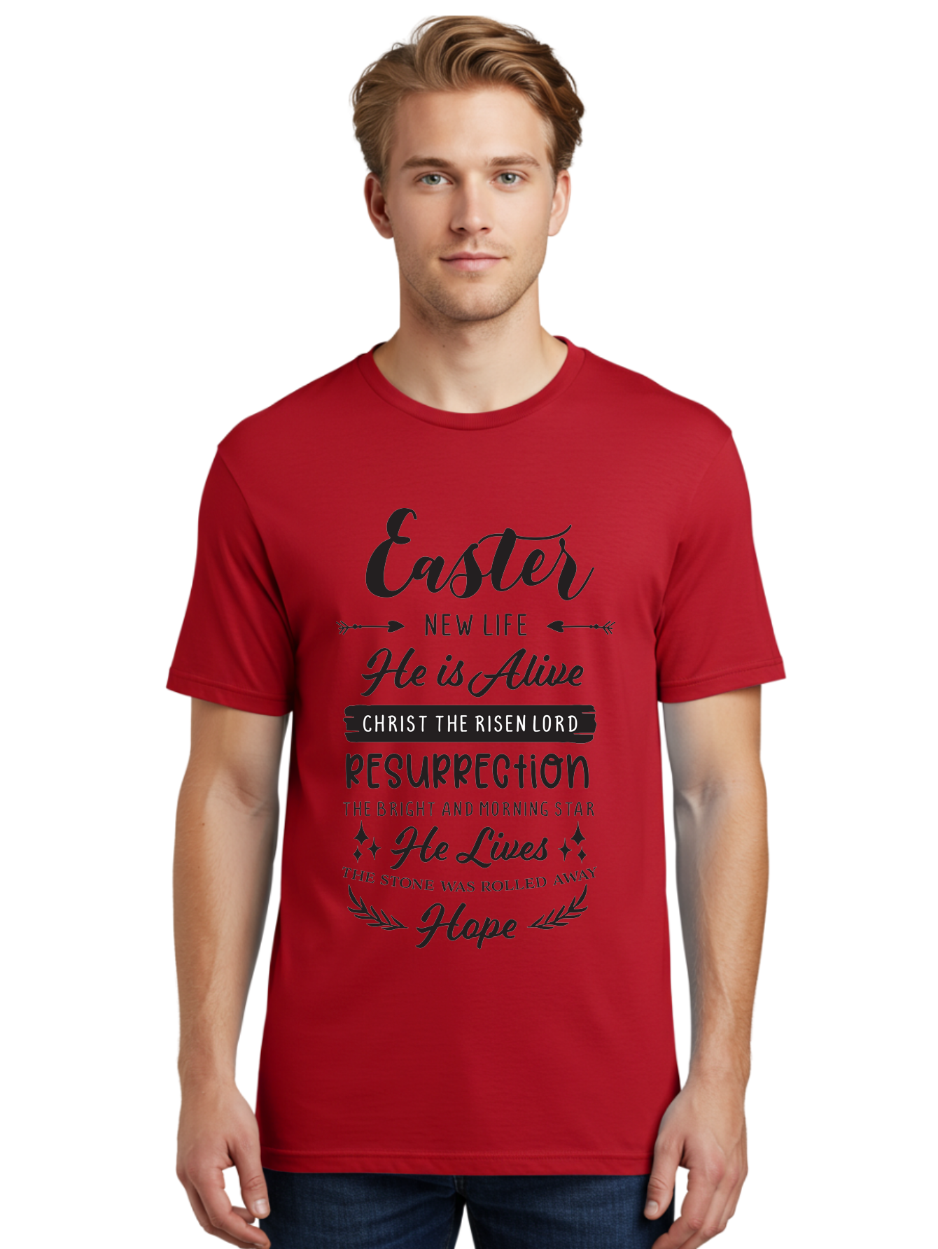 Easter Men'S Graphic Tee, 100% Cotton, Comfortable Casual Summer Wear, Machine Washable, Easter Message, He Is Alive, Christ The Risen Lord, Resurrection, New Life, Hope, Christian Faith, Biblical Scripture, Inspirational Quote, Aac678